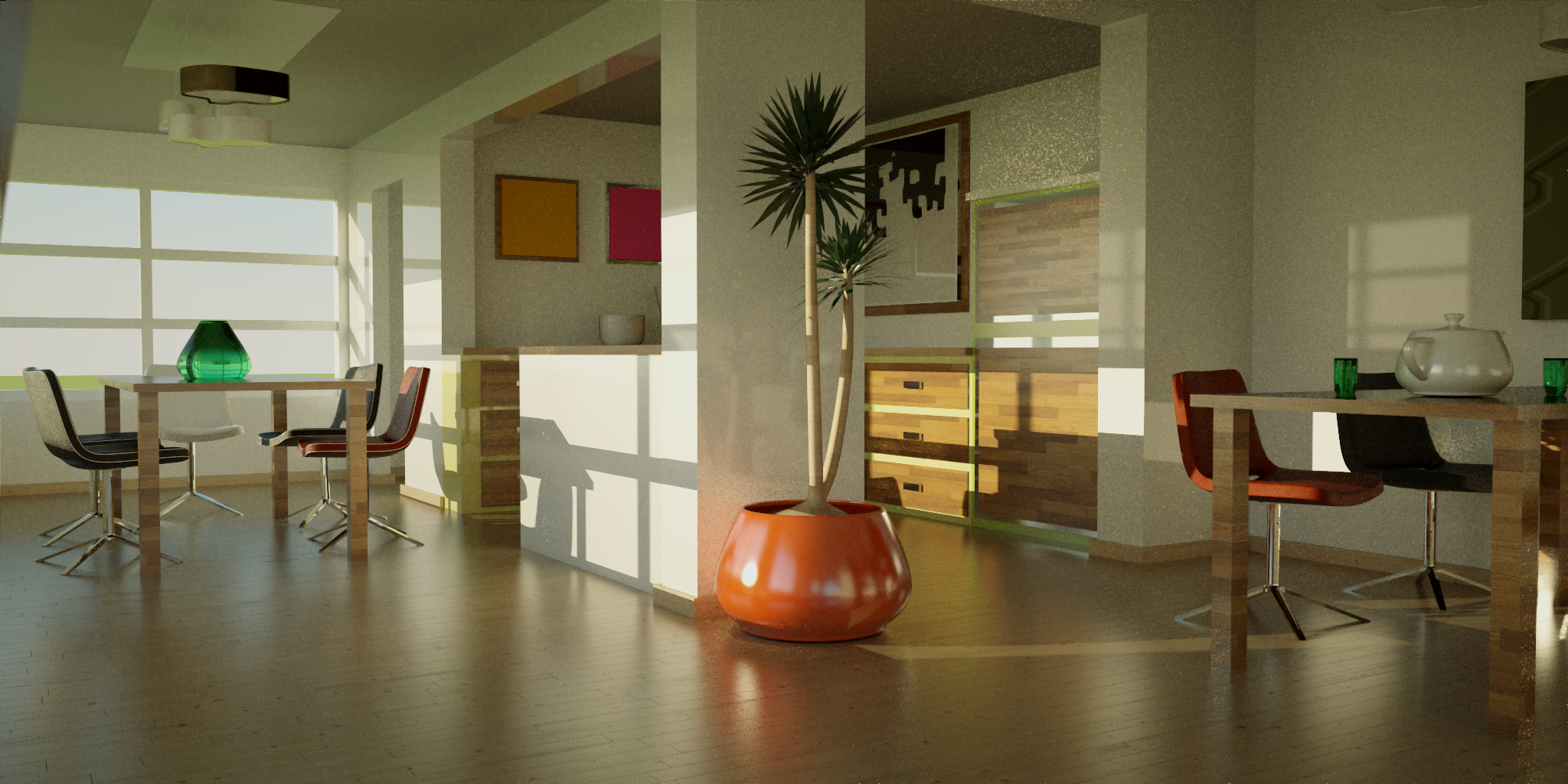 Pathtracing and sunlight was used+Denoise with pixlr (pretty nice online program)