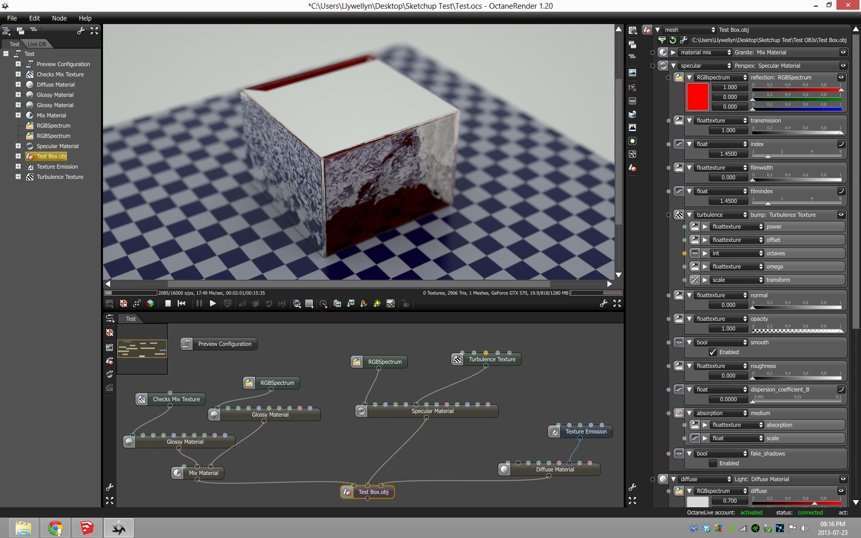 I'm a bit new to octane, yes a noobie. I tried to render a simple cube that's supposed to look like a perspex cube thats sandblasted with a light inside. As you can see it came out all wrong...