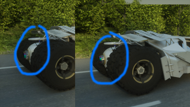 The plan is to fake the motion one the wheels with textures & smoothed out treads