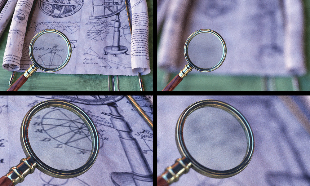 if I set a high aperture and focus the camera on the magnifying glass surface, shouldn't the refracted image inside be a bit more sharper and not completely blurred, on the same level as the background?