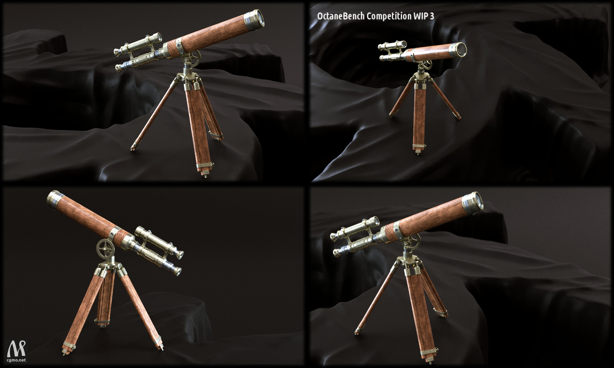 Anyway, I almost finished modeling the telescope, but I scratched the furniture stuff from the previous renders. Instead I will put the scope on a Octane logo, covered with some fabric, and that will function as a "table".