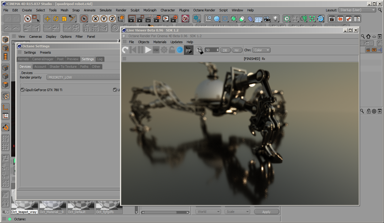 Installed Cinema4d R15 + Octane Standalone + Octane for Cinema 4d.
