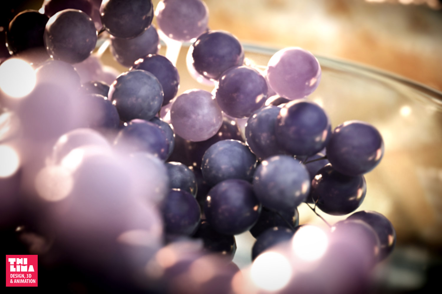 The first shot, the one with the grape, is absolutely photo-real, great job!