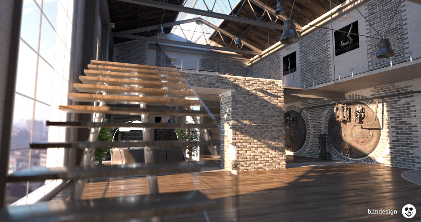 My main idea was to make a place that in the past could really be an industrial building and now has been adapted to live in it.