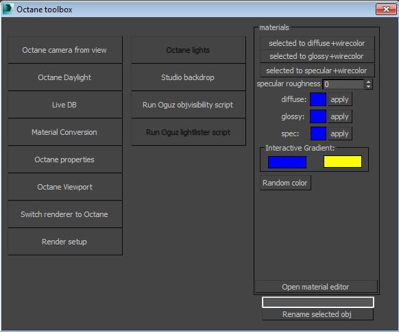//Octane render toolbox 3dsmax
