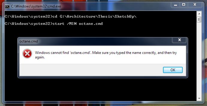 Perhaps your system is so fast that it hasn't "registered" the existence of the 'octane.cmd' file after it's made it, before making and running the 'start.cmd' file that is returning the message - I'll try adding a 'sleep' between making the two cmd files and running 'start.cmd'... It is making the files OK!?