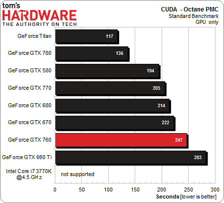 For instance, a 760 may possibly give 20 more FPS in a game like Crysis2 than a 580... but as you can see in the chart, a 580 will smoke a 760 in Octane. Kepler cores are (apparently) more geared toward better gaming with less heat and fan noise, at the expense of 1/3 the raw rendering power of Fermi cores. Which is why 3 Kepler cores = 1 Fermi core.