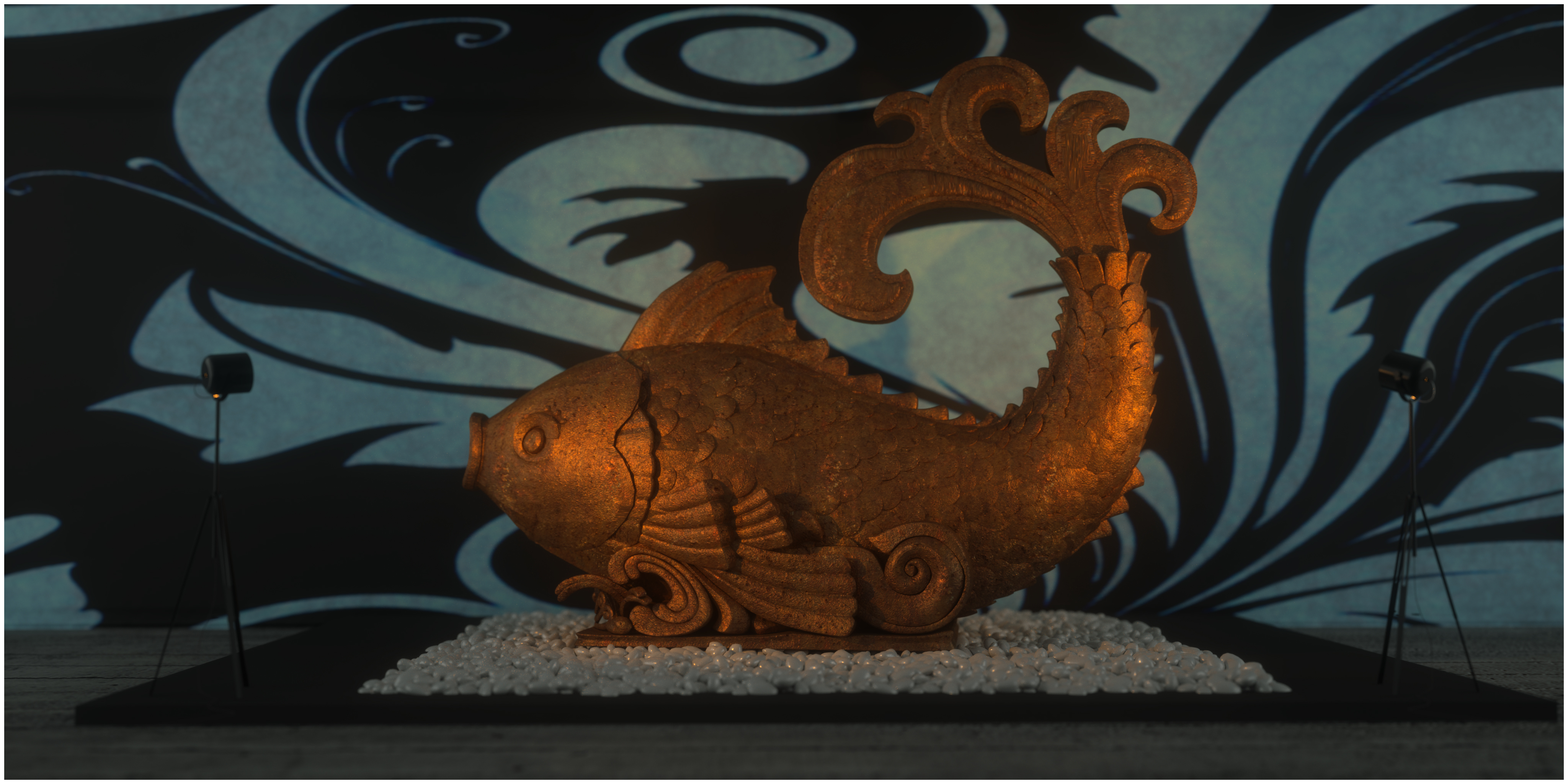 outstanding compared with my old gtx 295 (gtx 295 probably can´t render this scene). Fish sculpture is not mine, source: 3dmodelsfree.com