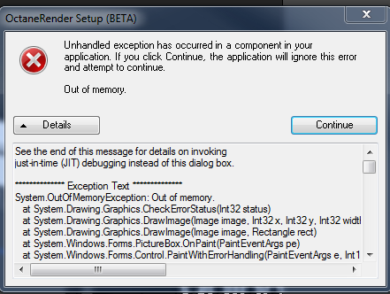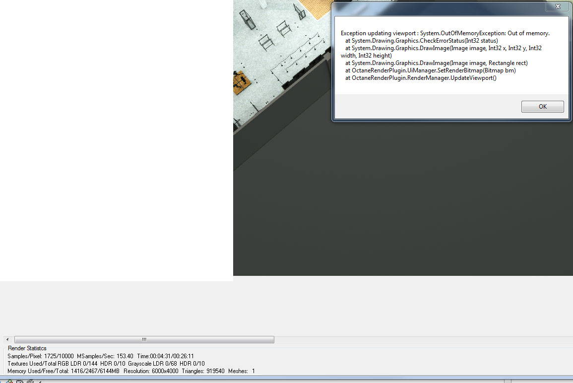 Thanks for the screenshot. I have been able to determine the cause and will post a fix tomorrow. I take it this error popped after the render had been running for some time.I got another Out of Mem.