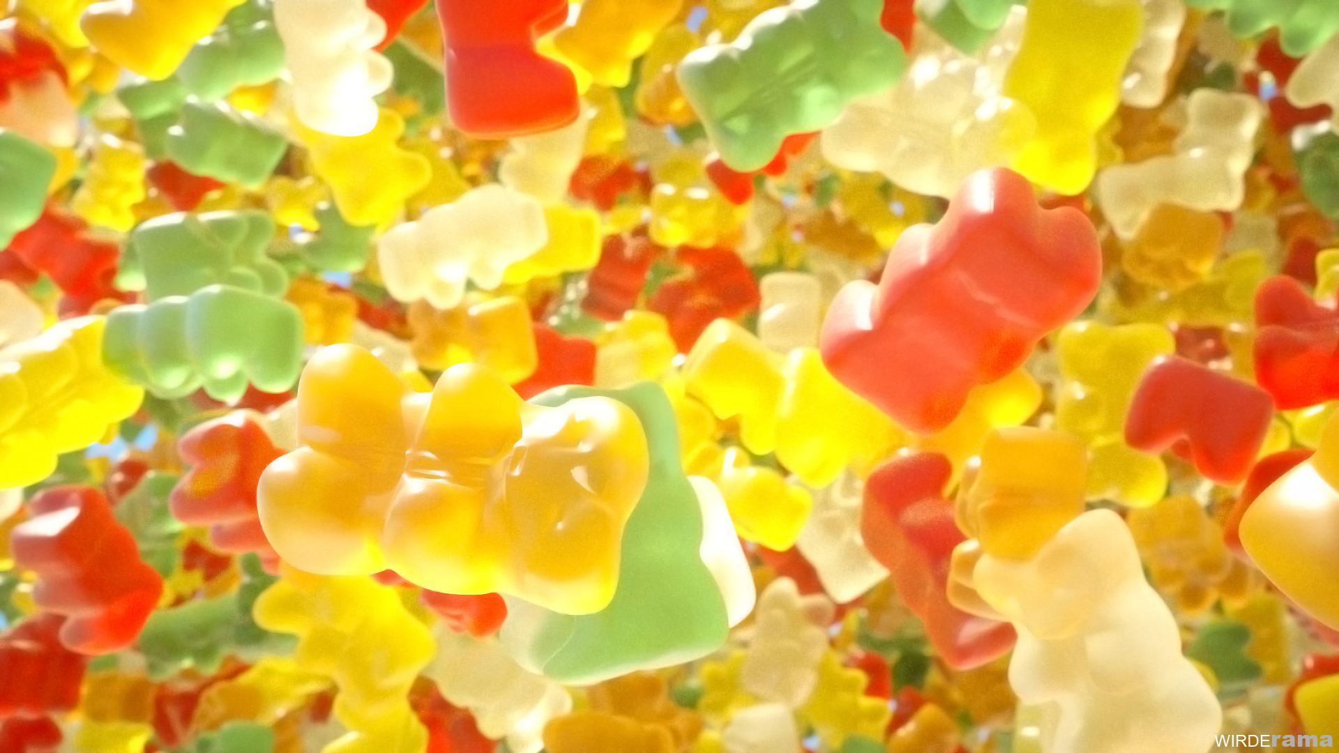 Here is another picture. This time i experimented with the absorption medium. I hope these little fellows look a bit like gummy bears.