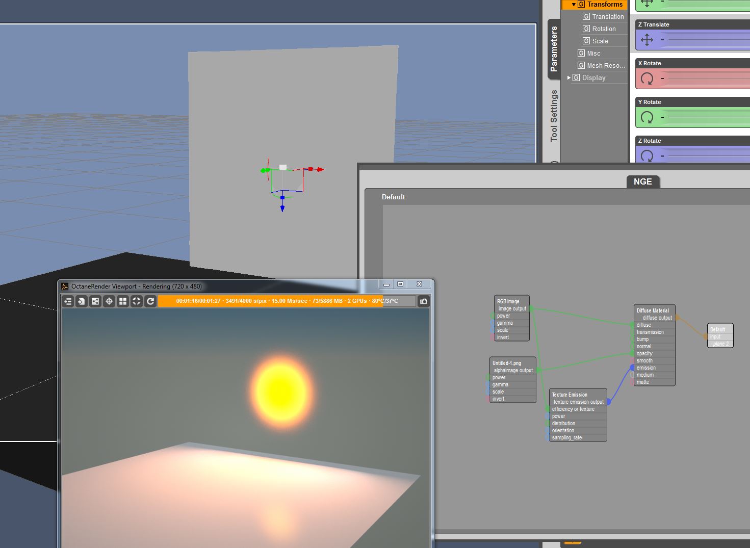 Now i changed the material to a textured lightsource :