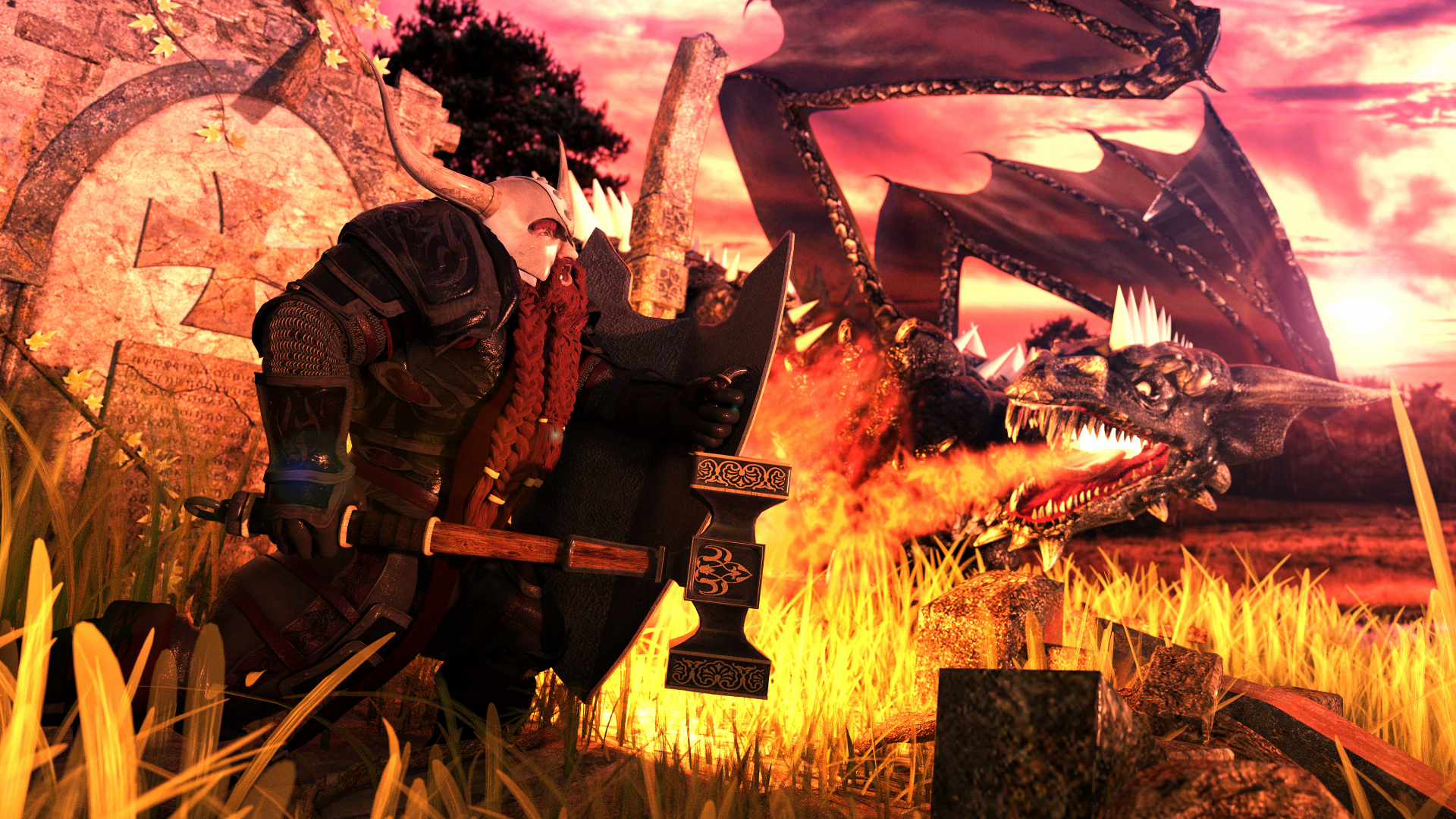 The same in the mouth of the dragon. I setup an fire object to create light in the mouth of the flames.