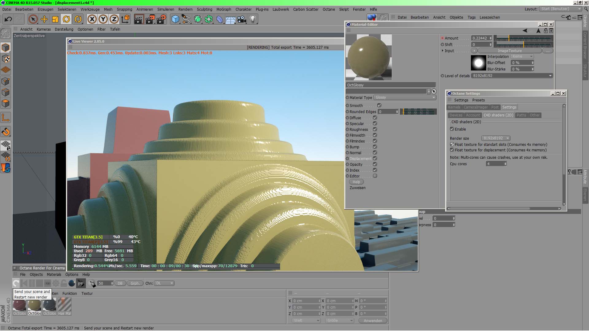 hi, I purchased and installed the version 2.06 of octane render standalone and plug-ins for cinema 4d version 2.03. everything works ... but on displacemnt I have problems.