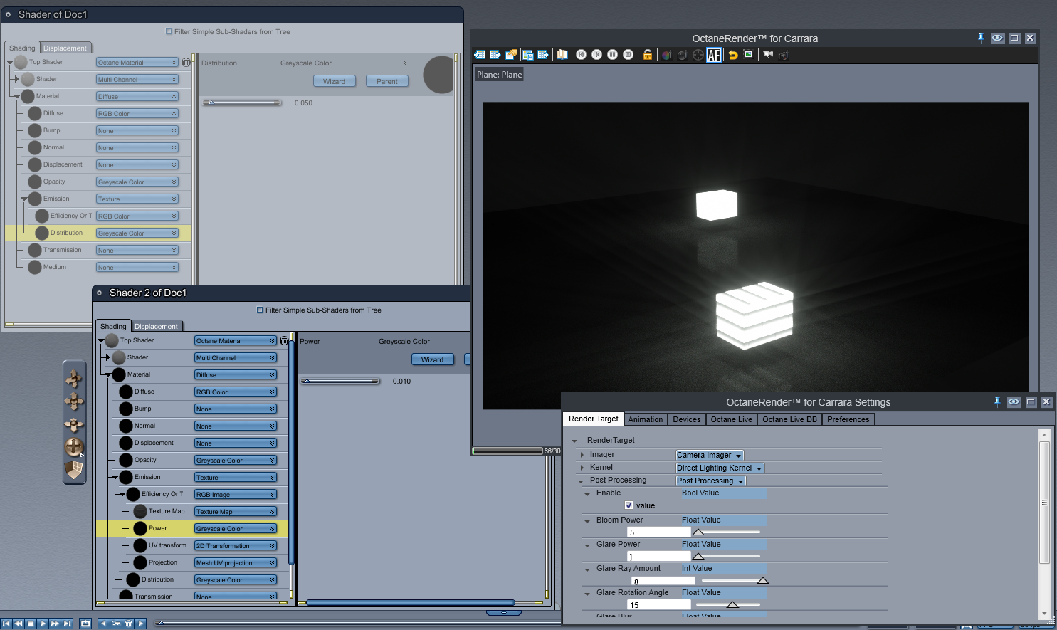 I thought it might be a good idea to start a thread discussing Octane materials, with a view to helping Carrara people translate from Carrara's own shaders, or even just improve our knowledge of creating materials. Plus how they interact with the other render settings.