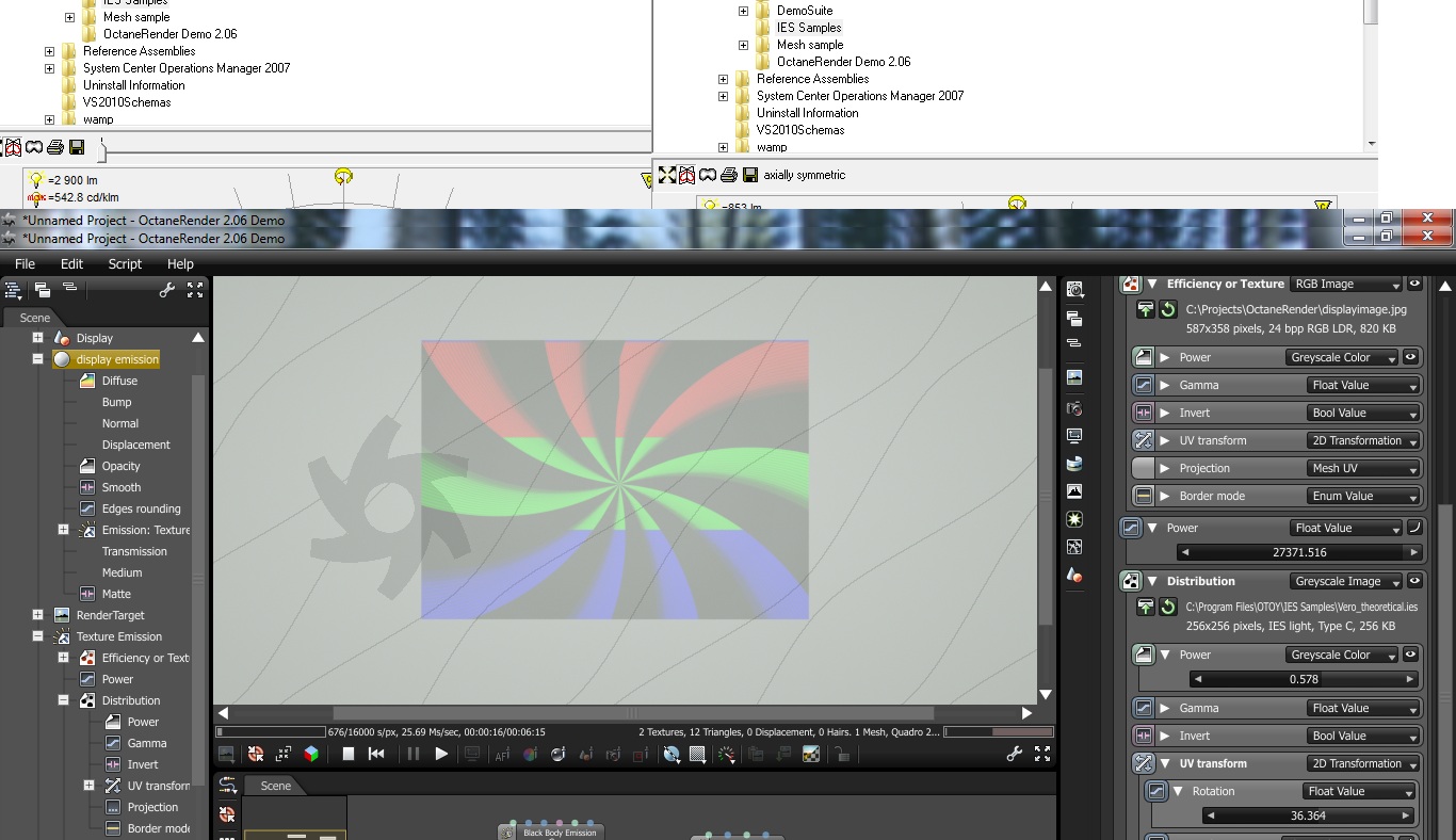 My wish was to superpose 3 such displays (one for each R,G,B canal with different .ies file for each one) so as to simulate for any color....and even further to use the "efficiency of texture" set to greyscale image to simulate for any image on a display.