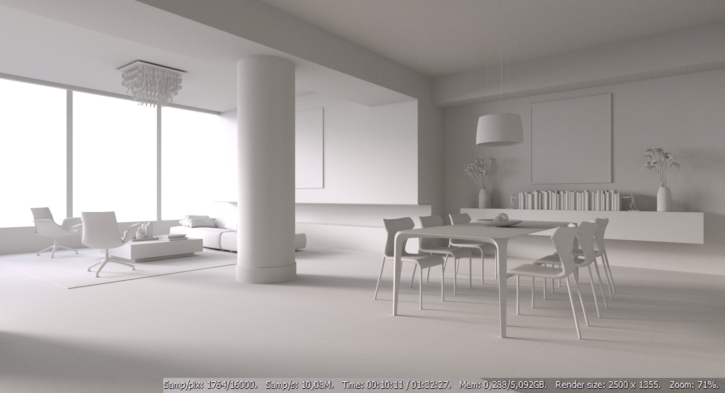 About those "unnatural bright interiors" think it's some sort of a trend that especially realEstate agencies are pushing for.. - in reality architectural photographers use some fill lights (spot & soft-boxes) take multiple exposures & blend things out in order to get appealing image that in reality is rarely seen =) Knowing this we can use that in our advantage too - as evenly lit interior will get clean output faster in Octane =)