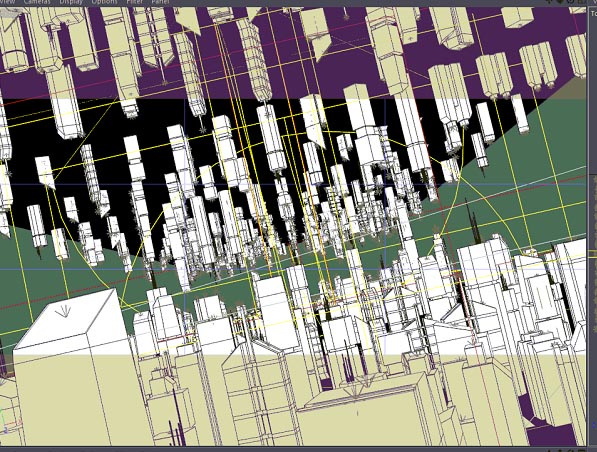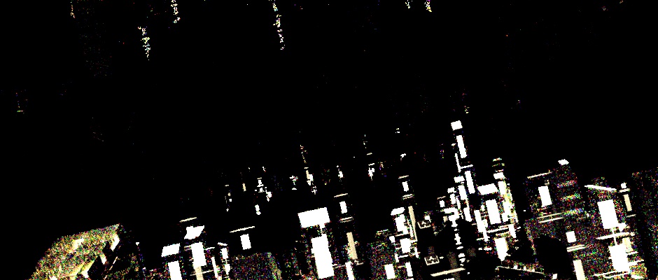 It's all there apart from the buildings. The rest of the scene is just cubes with Displacement / SSS Material covering the lights.