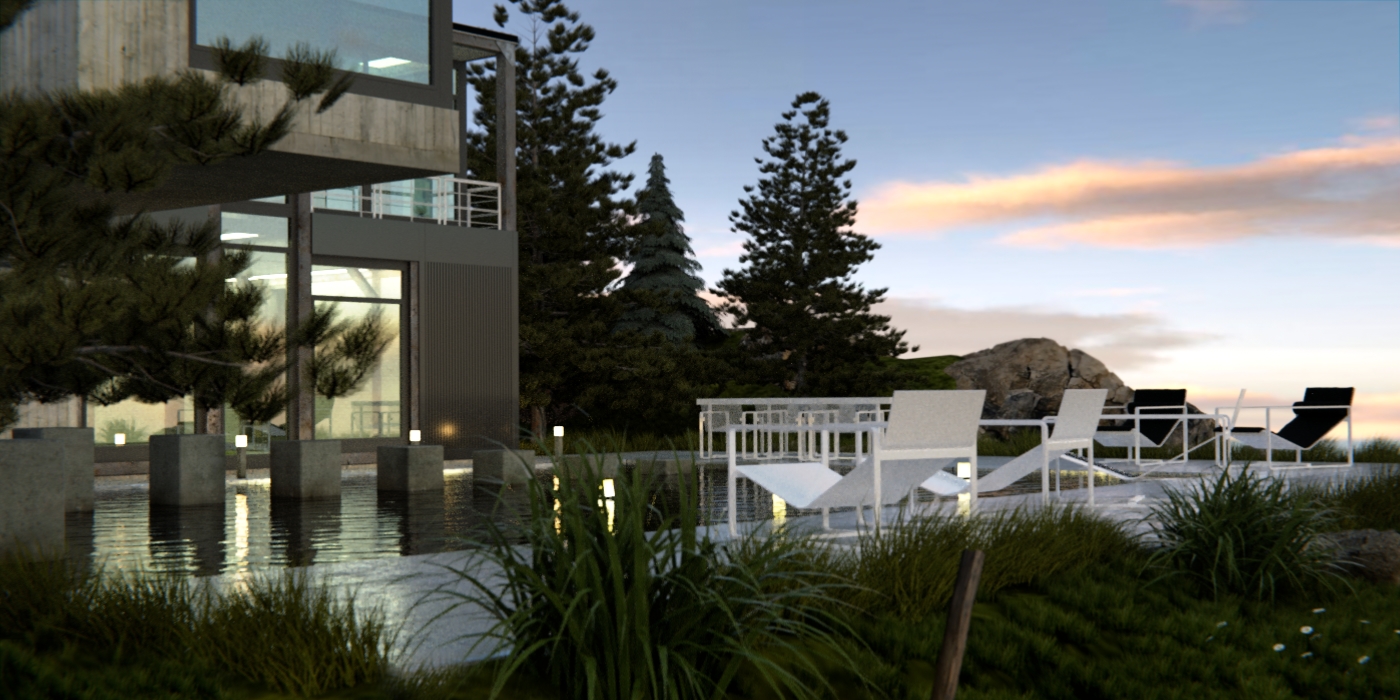 Some more boring archviz, it's time to find some inspiration and to switch to something else. Once again, I'm very impressed how fast those renderings were, the one with the boat beside the rocks took about 25 sec and the other not more then 20 min. The scene is lit with a jpg sky map.