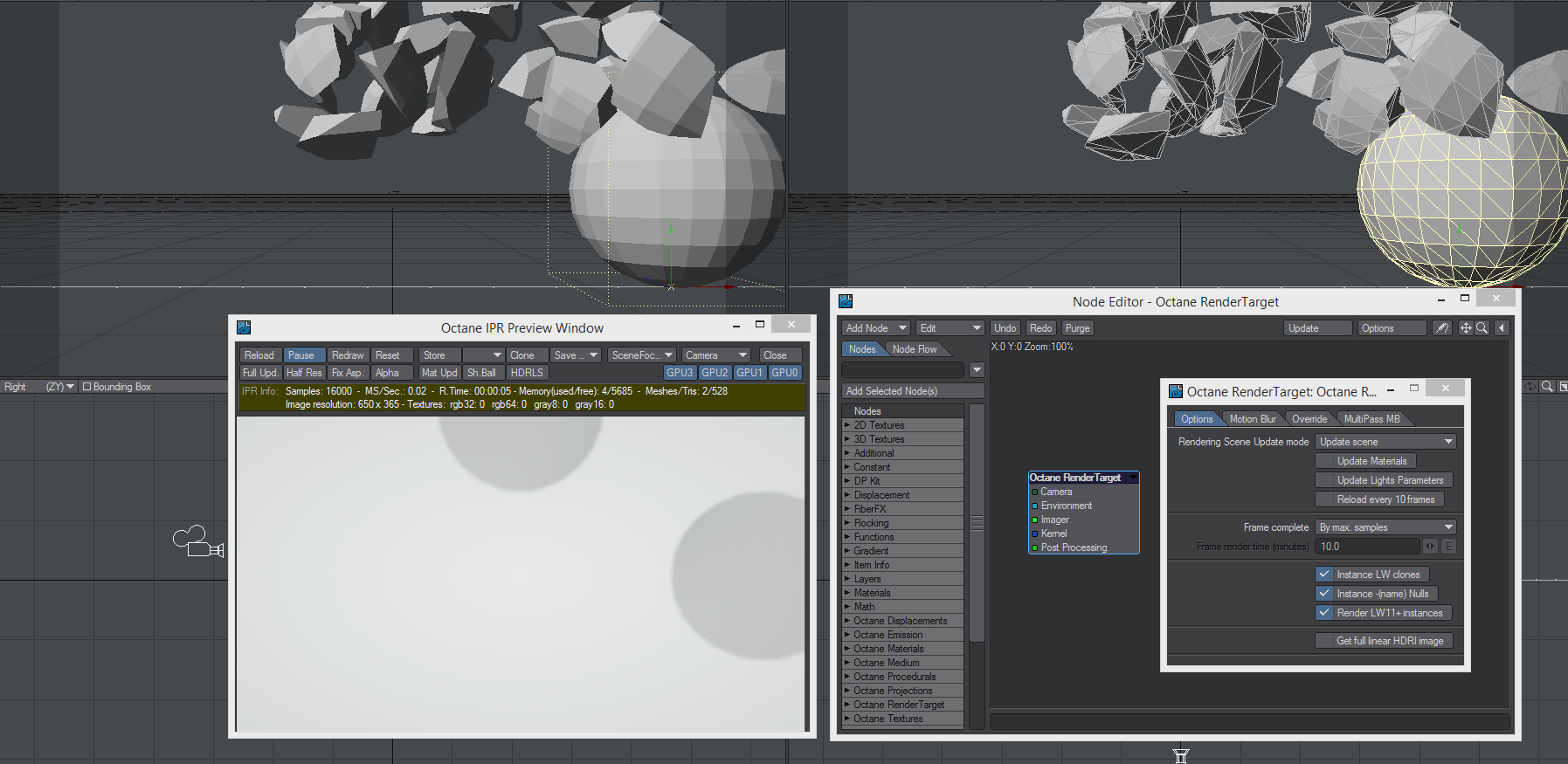 Getting instances/fracture working with Octane/Lightwave would be cool.
