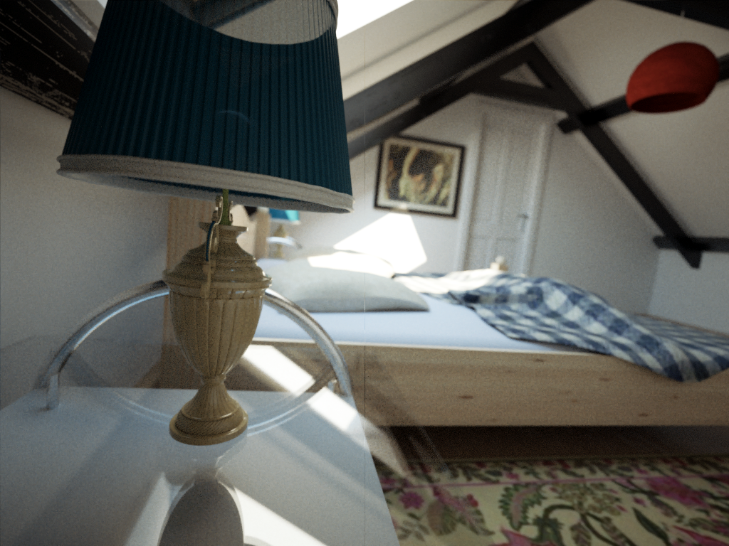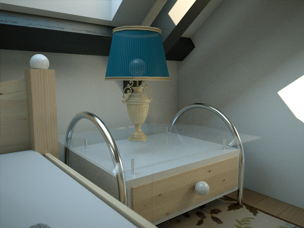 In the 3rd Picture you have the bedside table were the glass does not look right but a transparent material to me, the lamp in fact seems like floating to my eyes as