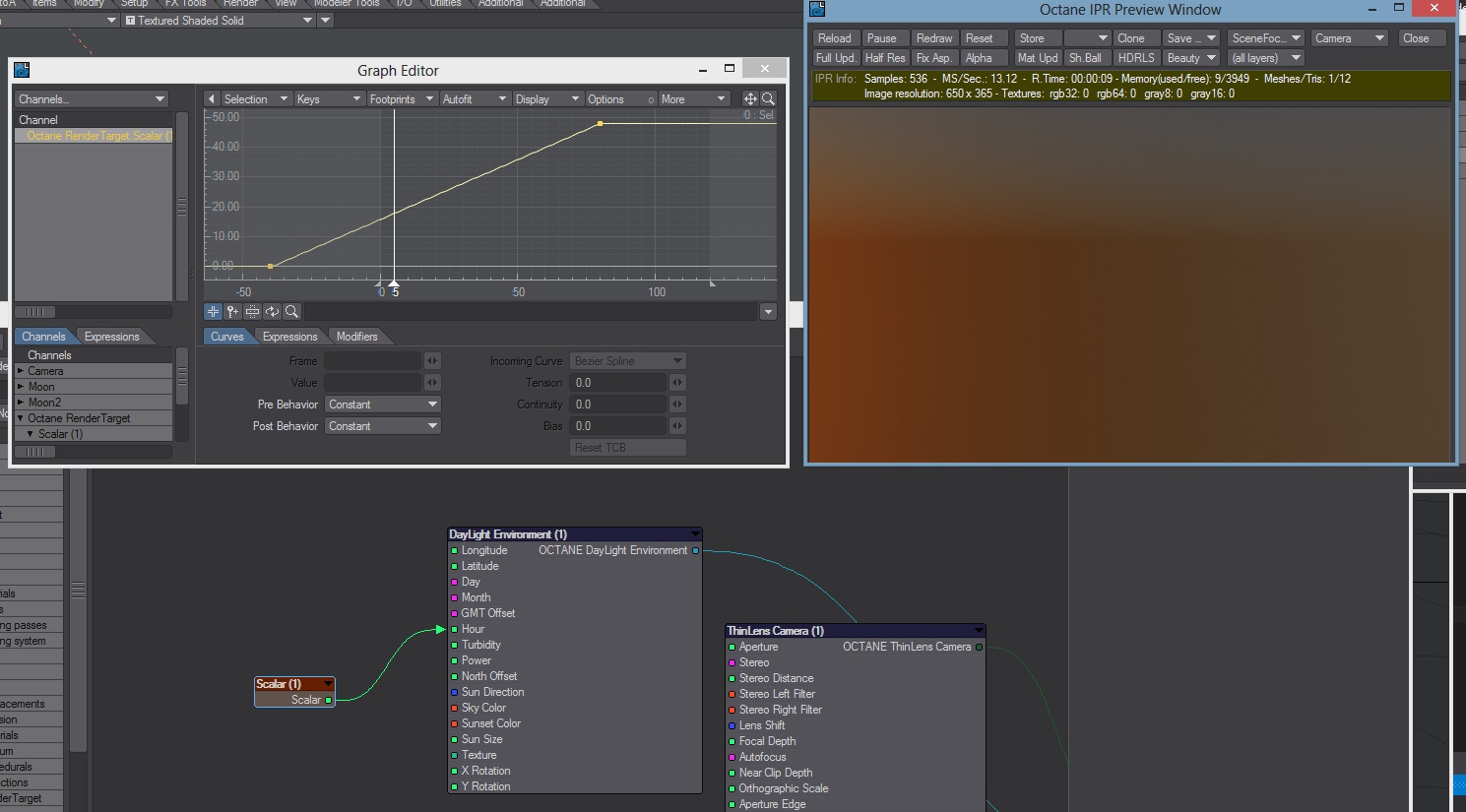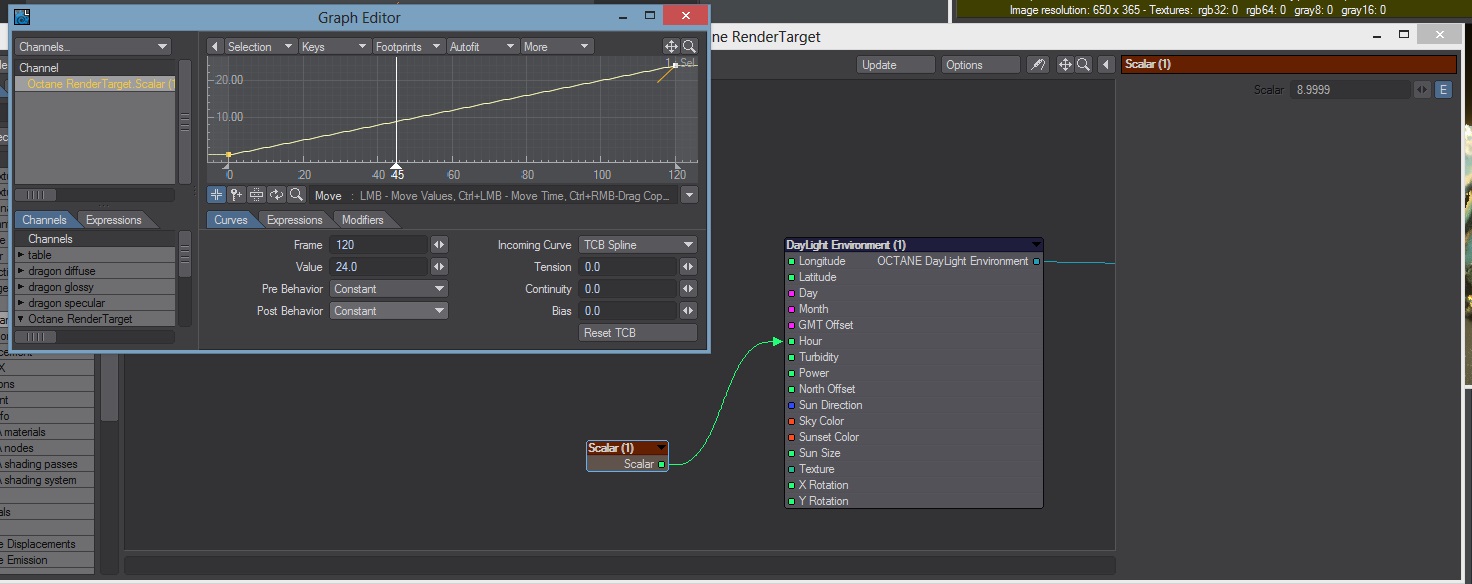 I tried plugging in a scalar node to the suns hour input but it does nothing. I then tried setting it to direction and pluging in a vector, still nothing. I must be missing something but I can't think of what. Is it possible to animate the environment?