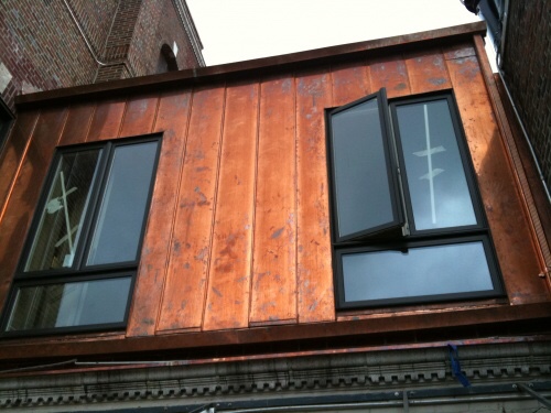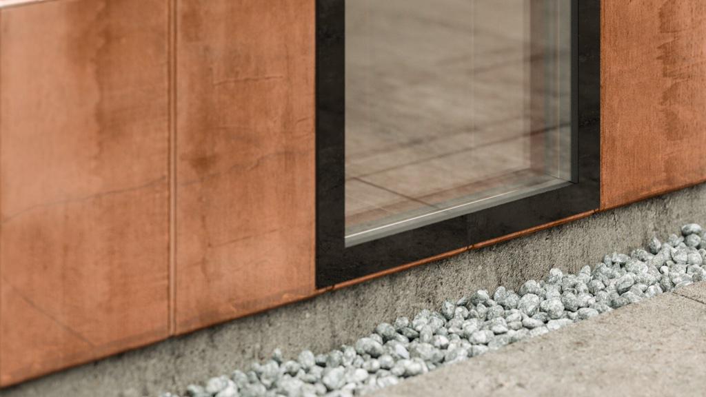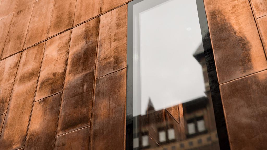 Nice images, the problem I see is in the 2nd view, from a constructive point of view, the joint between the copper cladding and the window frame looks weird to me.