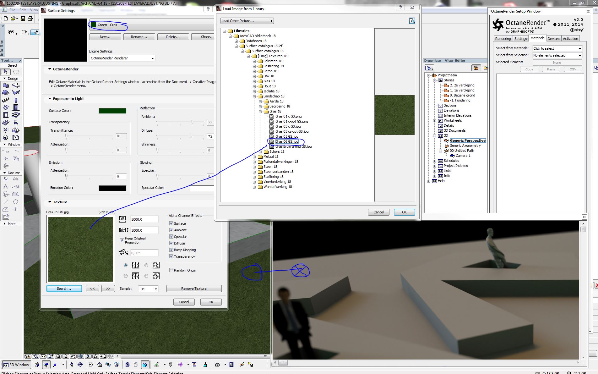Hi Jeroen. Have you extracted the AC library into your file system? If not, there will not be a "Gras 06 GS.jpg" in the file system - it will be encoded in the lcf library where Octane cannot access it. http://render.otoy.com/manuals/ArchiCAD/?page_id=169. The plugin should pop some sort of message when this occurs. Have you checked the Octane Log?
