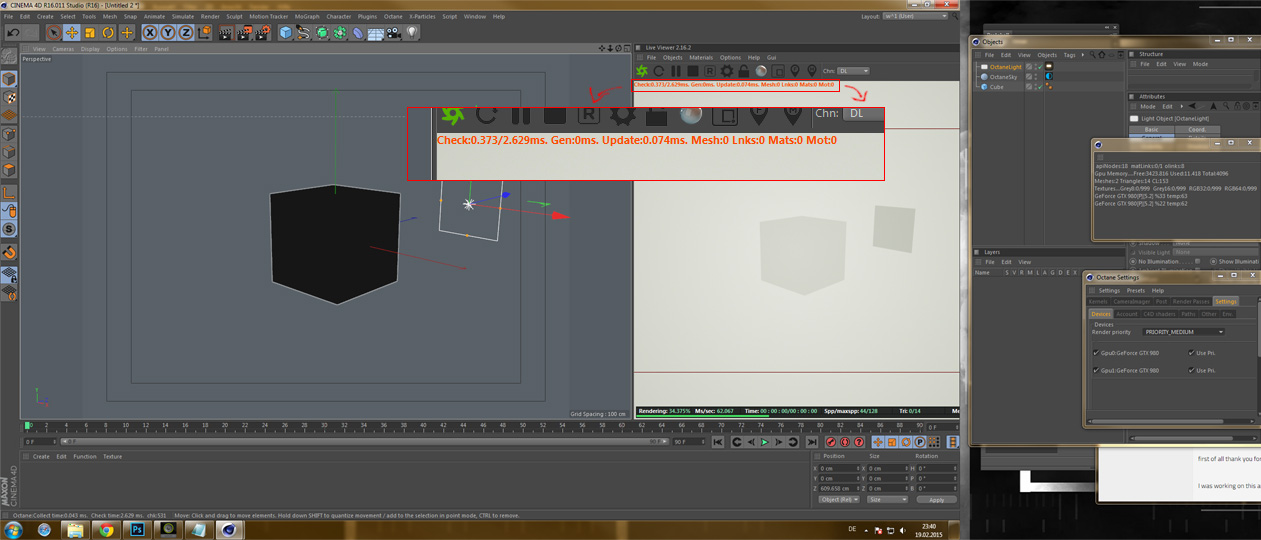 _yes, I am using big textures in that C4d setup - but, before updating it was working and it shouldnt be a problem with two gtx980 cards, though (4GB ram, each)