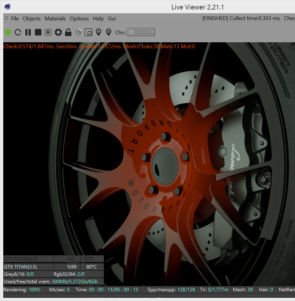 I hear you, however "spreading more light across the wheel which is more true to life" is not a feature of PMC or of any other kernel for that matter. It's about using the proper settings, not Render Kernel. There are very few cases where you will be forced to go with PMC instead of the faster Path Tracing or Direct Lighting.. and this is not one of them. Spend some time with Path Tracing, i bet you will get where you are headed in far less time.buzby wrote:I was saying aboveinlifethrill wrote:Why would you even use PMC for that? By the look of it - Path Tracing or even Direct Lighting would be enough to render this in a blaze.