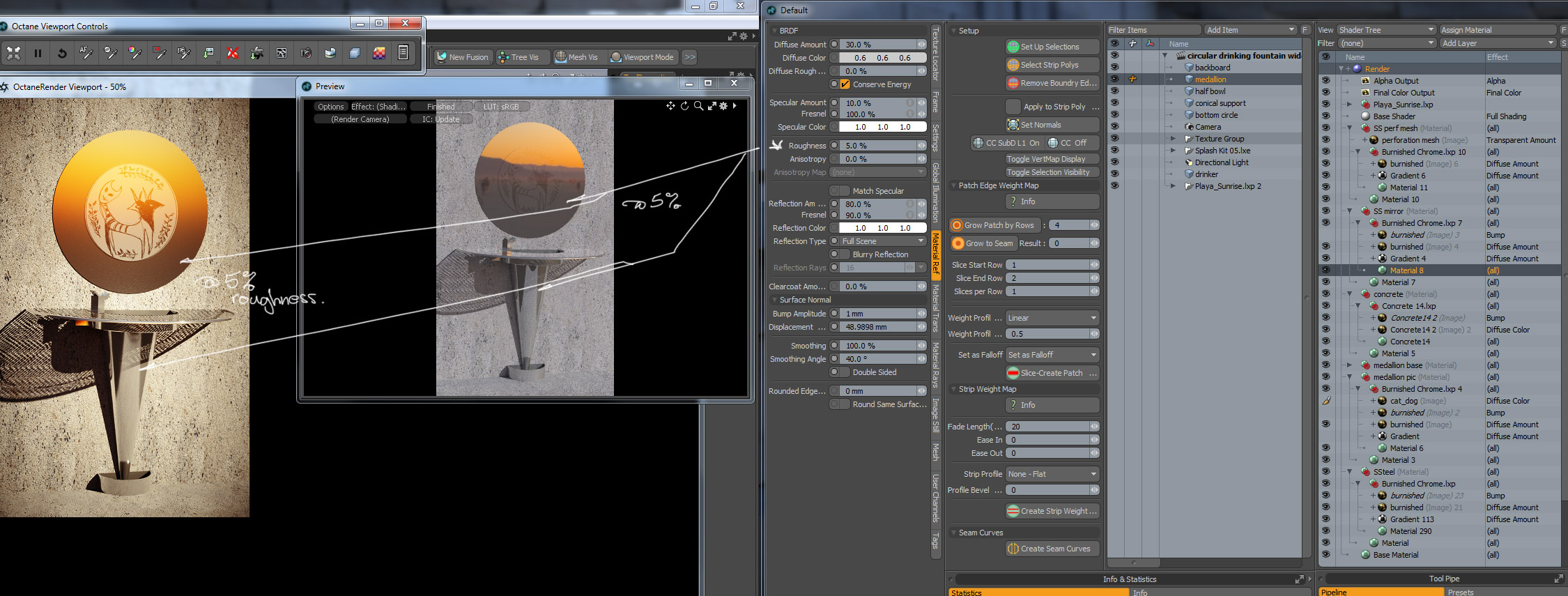 Anyway I'll post the pics of the material setup anyway for completeness.. Hopefully you sorta can see that the render in modo does not follow visually the same as the Octane render and that ultimately was what threw me.