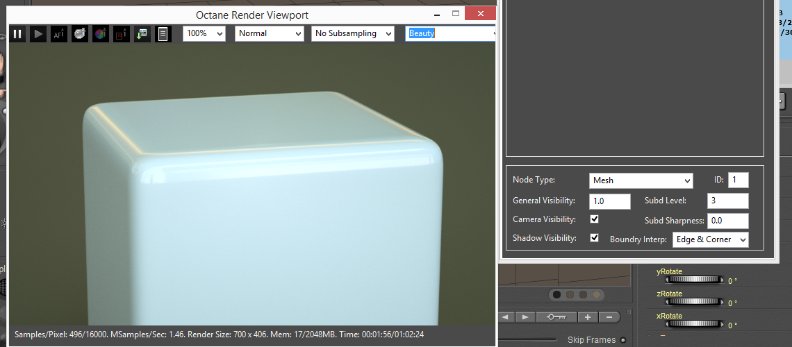 Zay - that has the edges rounded. If you set Rounded Edge Radius to 0 you will get a much harder edge on the cube. If you want a higher degree of roundness, use the Octane subd functions.
