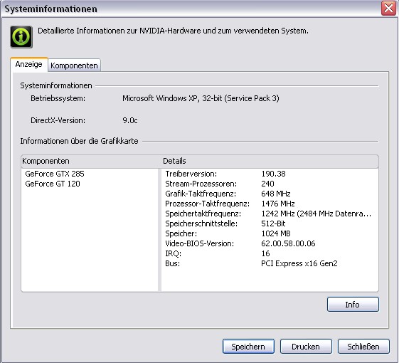 Both Graphic Cards are shown and the GTX285 is checked