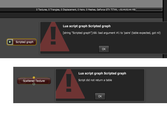 To clarify, there are 2 types of Lua scripts in Octane. Regular scripts and scripts that can be used by a scripted graph. Scripts for a scripted graph require a specific code structure. Those 2 types of scripts aren't interchangeable.