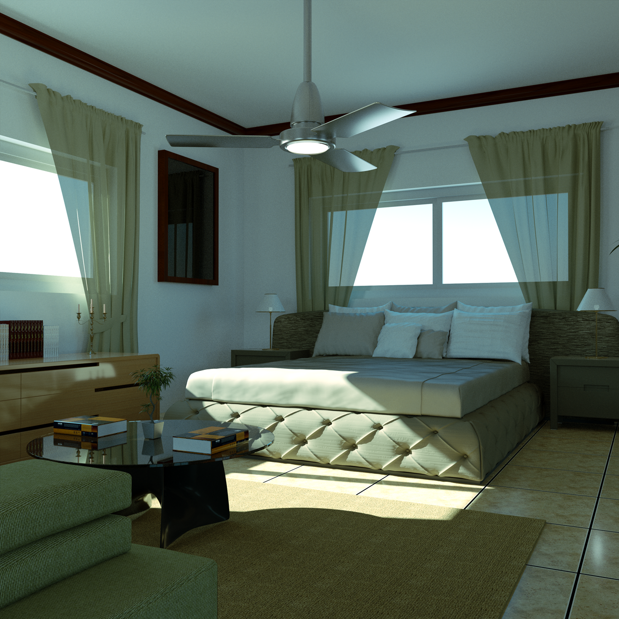 thanks MaTtY631990,MaTtY631990 wrote:For better results with the curtains, create a diffuse material in graph editor and add a RGB spectrum texture and connect to transmission input on the diffuse material.The first colour will be your curtain colour and second will control the amount of translucency. You will need to switch to pathtracing to see the effect.