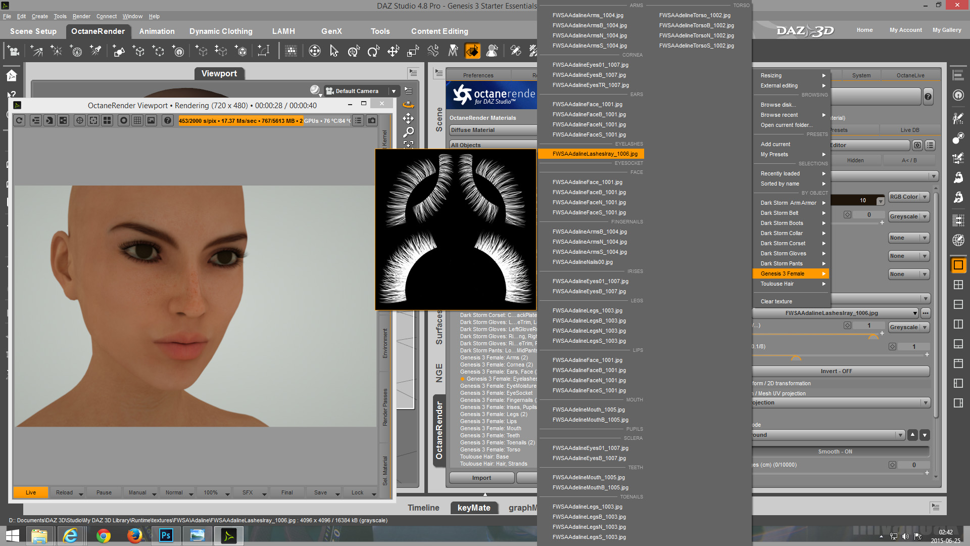 - Eyelashes (used with only a transparency map)