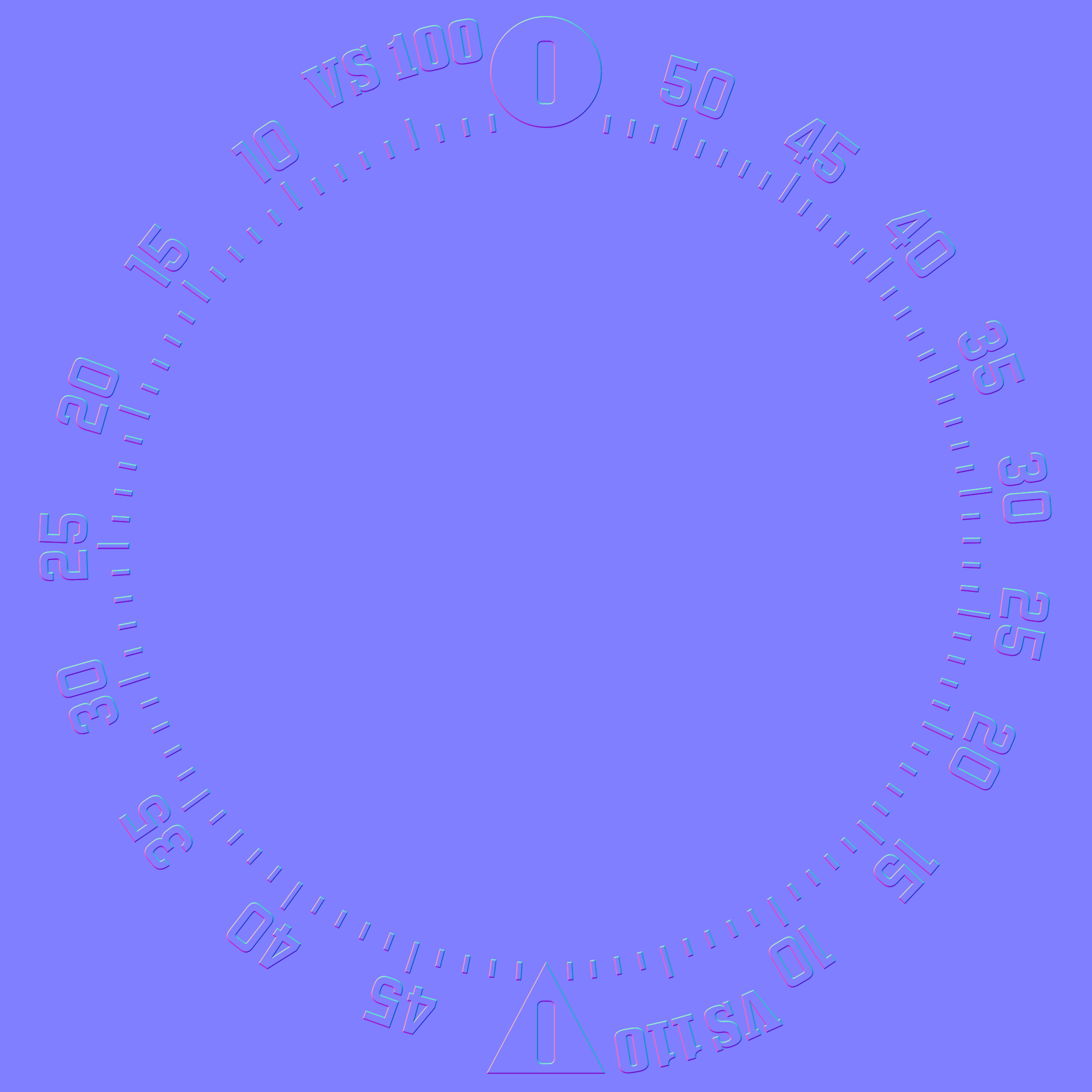 The fist render used the bump map below, it looked fine to me but I wanted to get more deepness. Second one is my first attemp with a normal map but it seems you need to build it with knowing in advance where the light will come from in order to achieve a good result. It also looks like I've made it in the wrong direction (numbers and marks are below ring surface on my real watch).