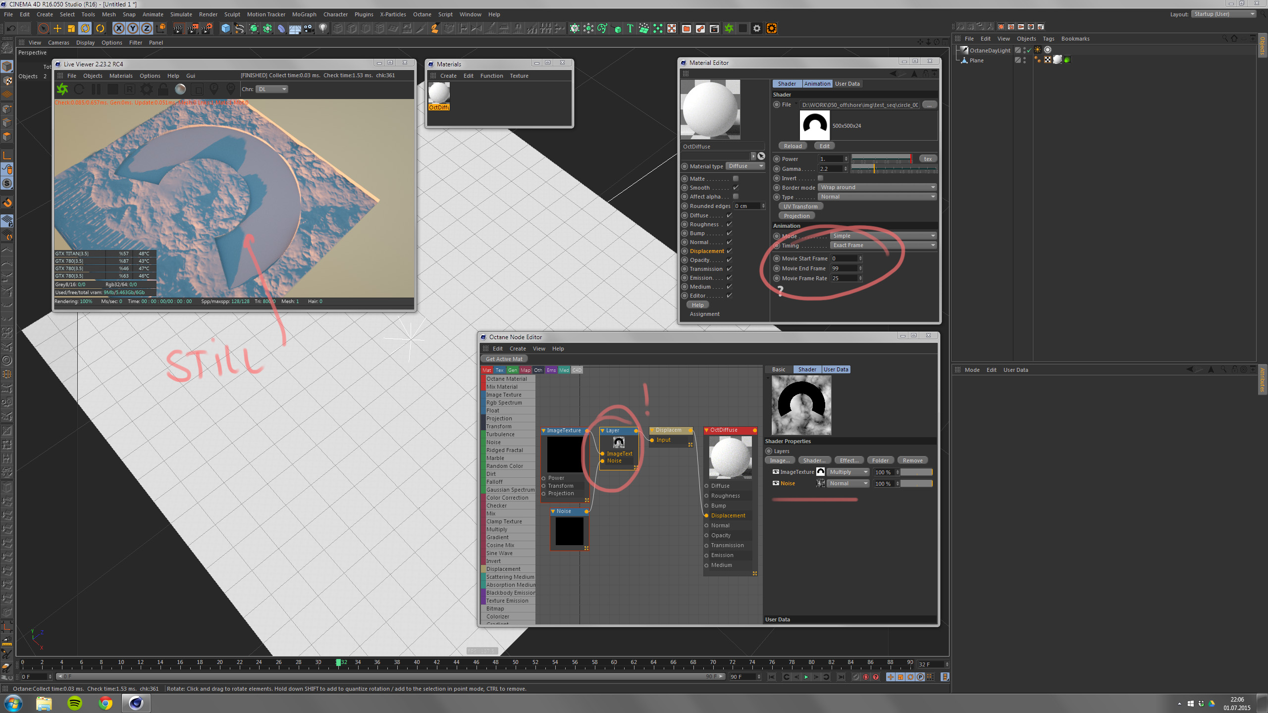 when i have just the image sequence as the displacement map, everything works fine, however, when i use the layer function to overlay 2 maps, it seems to ignore the animation of the image sequence.