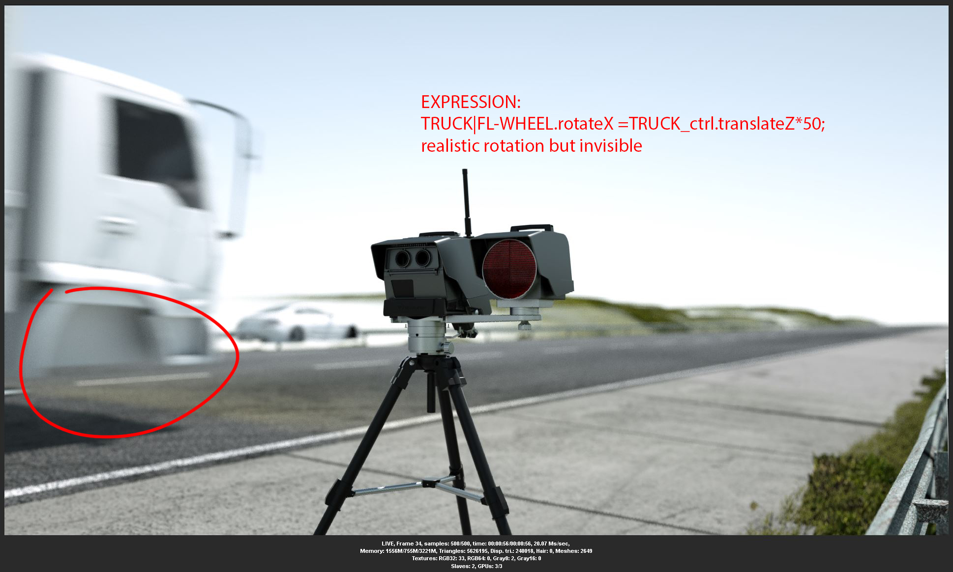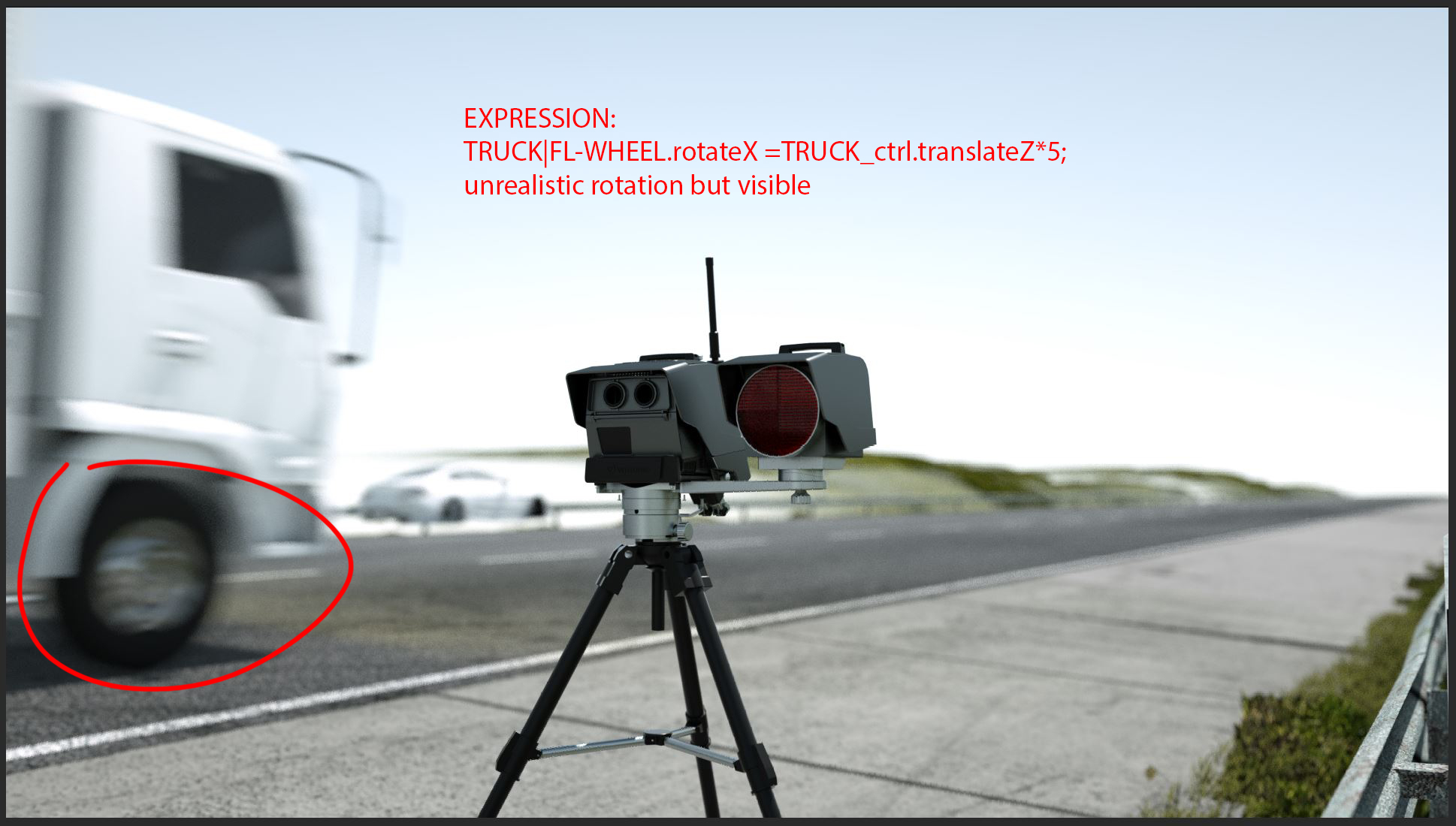 ( "TRUCK|FL-WHEEL.rotateX =TRUCK_ctrl.translateZ*50; ) The Settings of the Motionblur are: