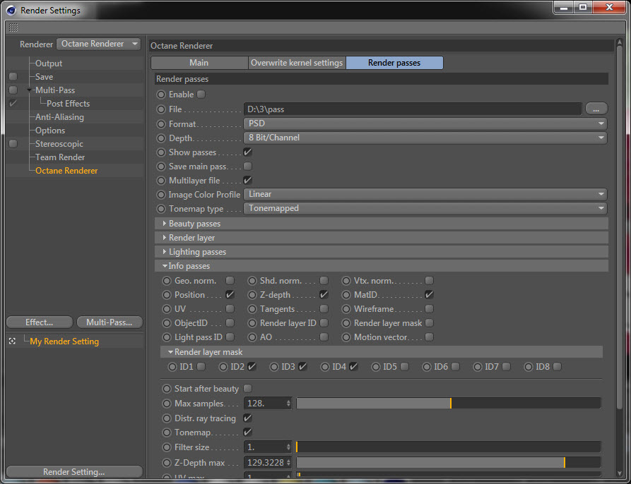I struggle to get this to work as expected. I'll select ID1-3 under "render layer mask" but keep running into objects all showing up on the same layer (ID1).aoktar wrote:You need version 2.24 and render layer mask sets. See image. I see you watched some tutorials but not render pass tutorials.