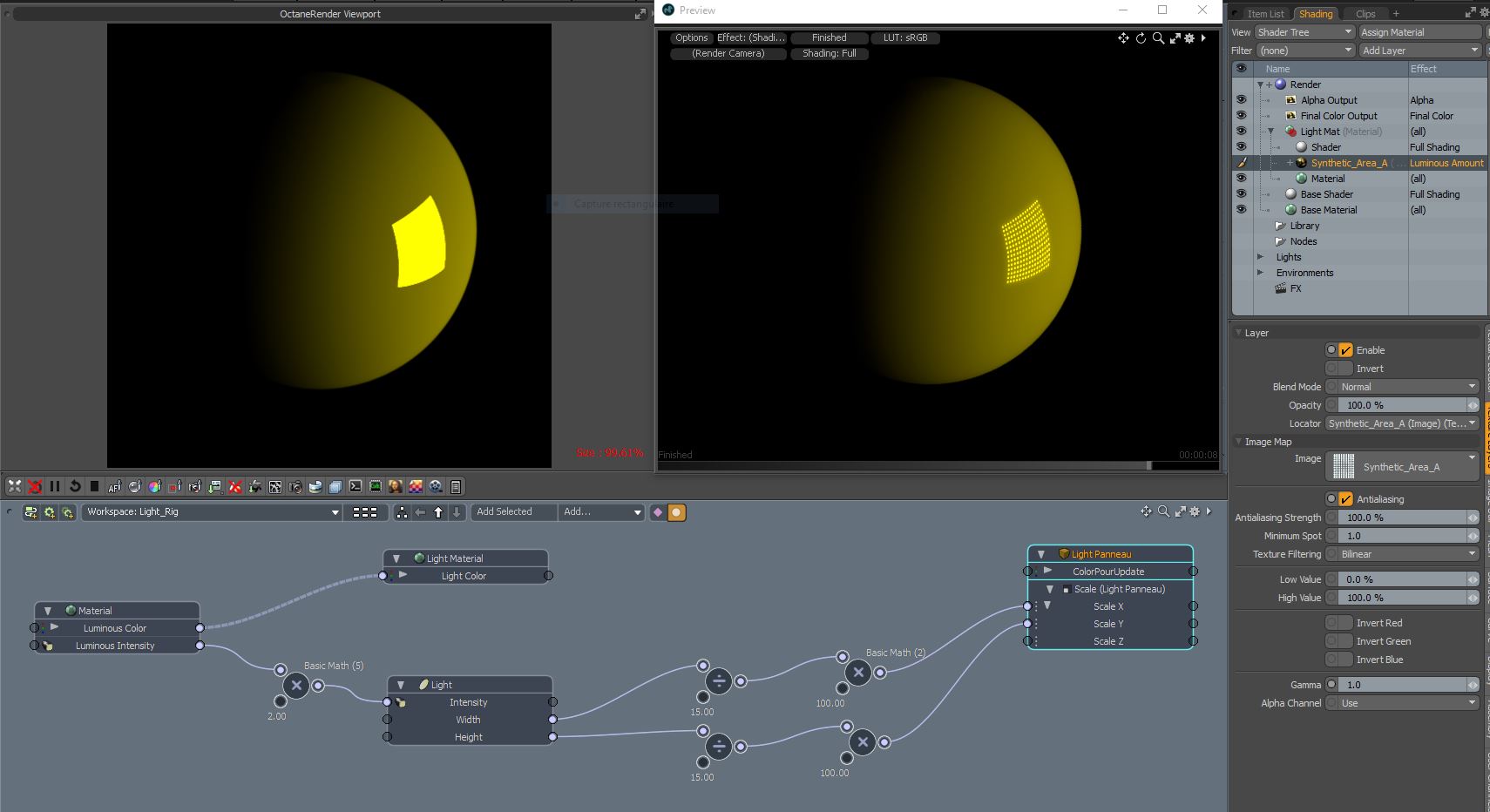 What is giving me trouble is that i need to be able tu use a map for the intensity of the light (luminous amount in the shader tree), as those are not converted by the plugin i need to add an override, here start the trouble to link a real light with a luminous polygon for octane.