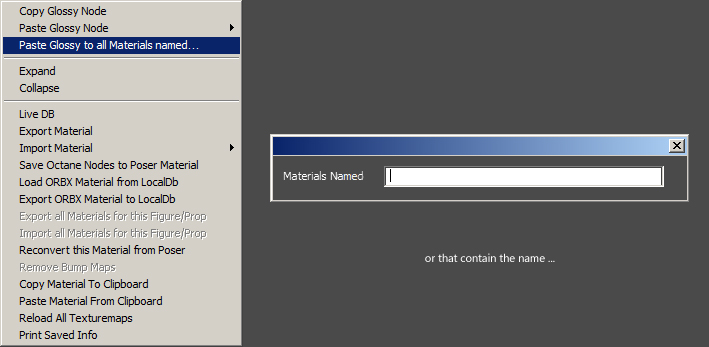 You can already do this by selecting the material name you want to paste to and then selection the rightclick menu option "Paste Glossy to all Materials named [material name]".It would be nice to something like ...