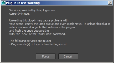 When I create a new scene and add nothing and load Octane and then try to unload it again this gives the following error: