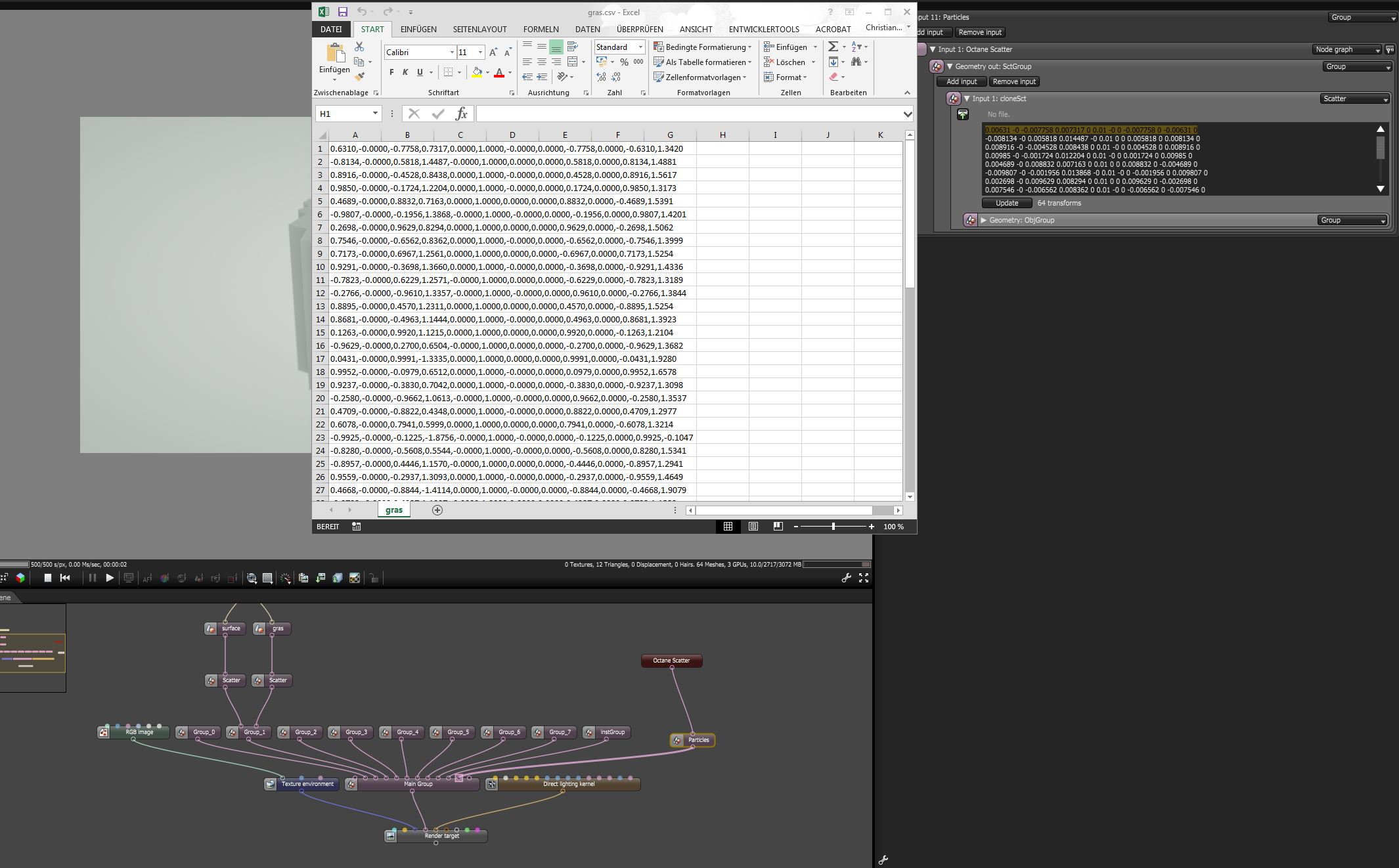when i open the scene in octane standalone i can see that the coordinates are not the same as in the csv file: