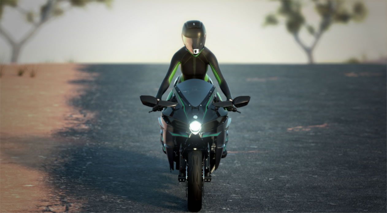 For my next project, I will explain the supercharger working in the Ninja H2R. I used a DAZ3D Genesis model. The whole scene is rendered with Octane in Carrara 8 Pro. I used some noise in post-production to make it more like a photo than a 3d graphics art.
