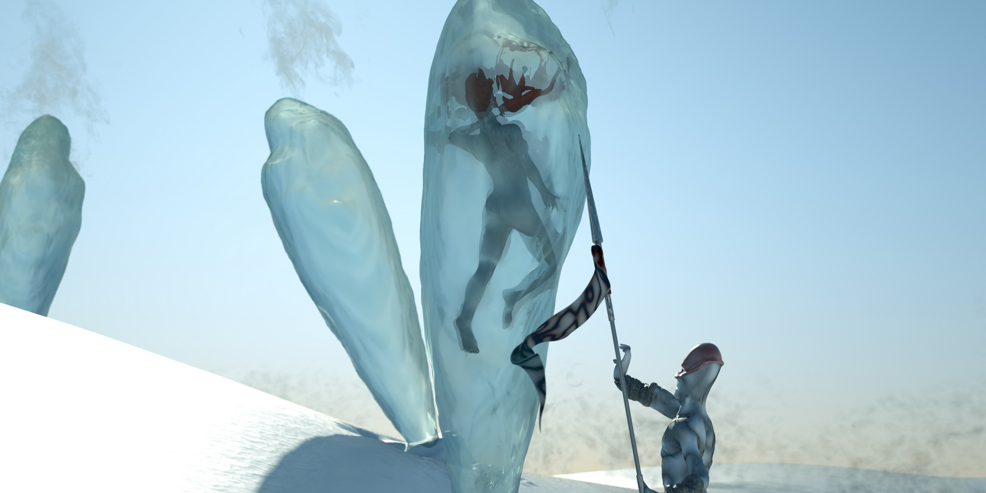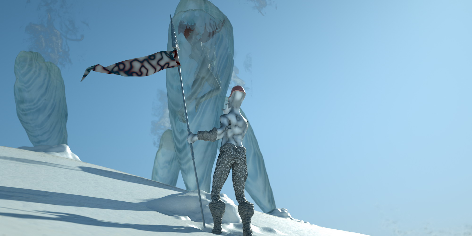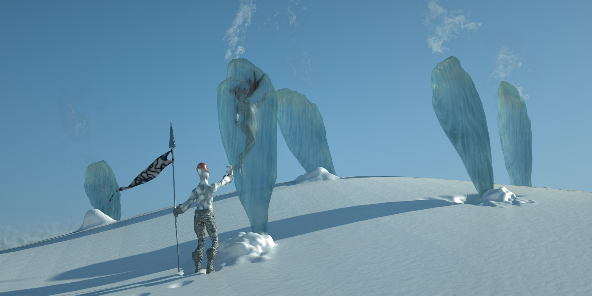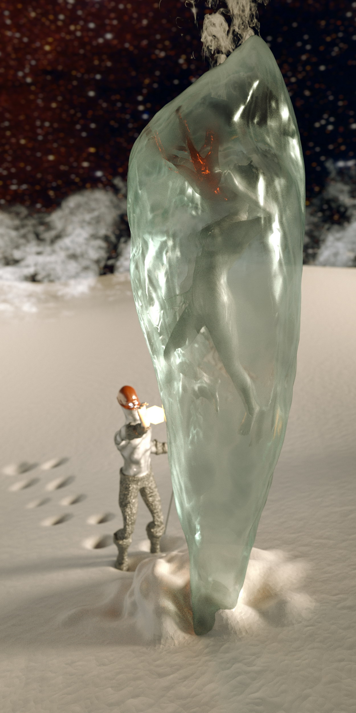 Well, for this year's competition I wanted to do something different from my usual archviz stuff. I've always liked sci-fi, and it came to my mind some classic 50's literature, I threw some sketches. I knew I wanted to test the new features of octane, as light passing thru materials using opacity. I thought, hey, how about if the whole scene is light by a moon, I mean an actual moon emitting light (well not actually physical correct, but almost). So I found a neat moon map I used as texture emmitter http://celestiamotherlode.net/catalog/s ... ator_id=10. Then I used Sculptris to model the whole scene and hand paint the masks for the materials. After riggin the alien and the girl in max I exported the whole thing to octane and the fun begun. Finally I've made used of macros and being able to pan around the node graph I've had tons of fun playing with the materials. Besides the steam maps (modified from some smoke images from http://cgtextures.com), the moon and the characters material mask the rest is done with procedural textures. Probably the one I've enjoyed and like more is the ice one.