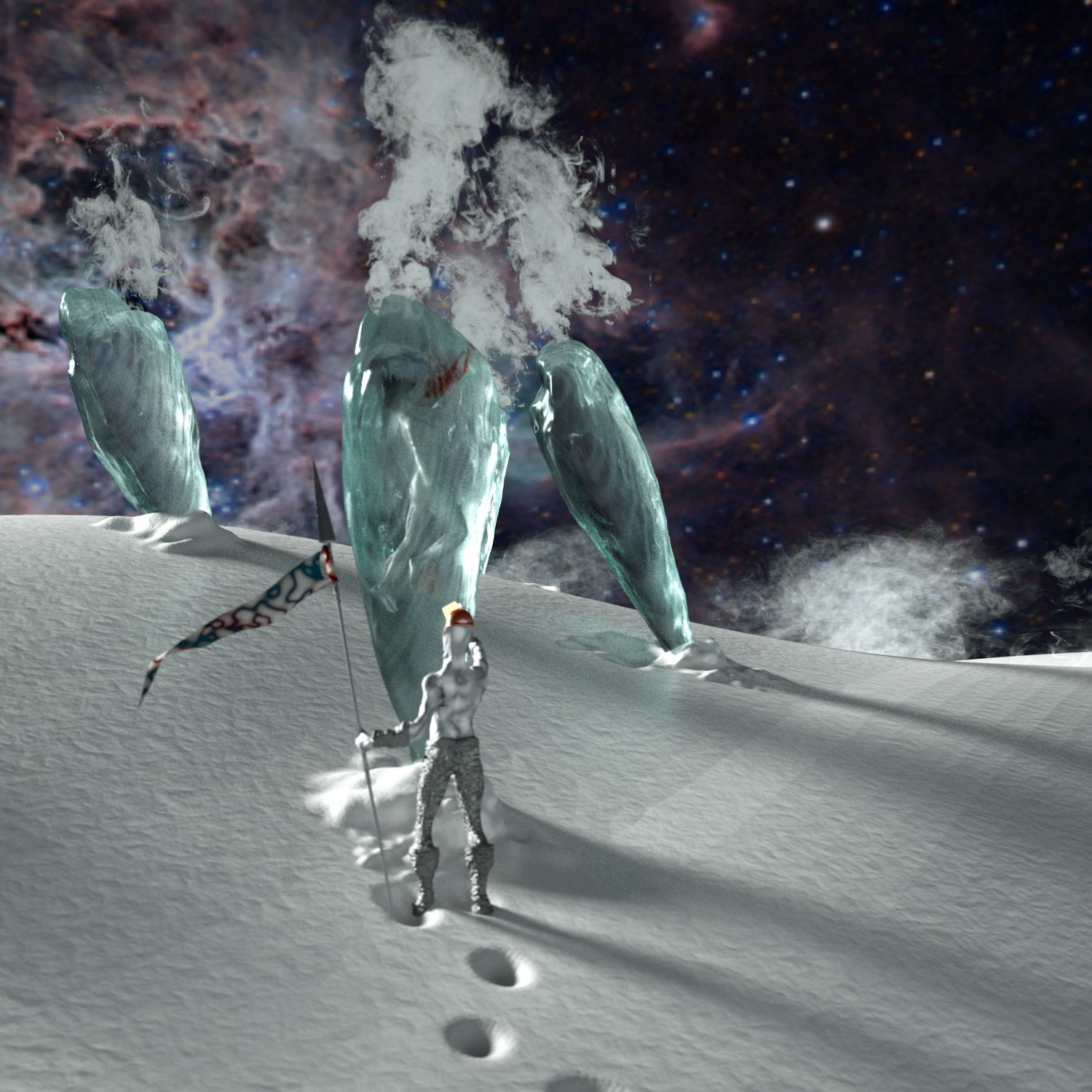 When it was almost ready I thought I needed a nice background to go with it, so I started to browse around for an "alien" sky, NASA was the first stop and there I found this sweet photos by Mike Sidonio http://www.pbase.com/strongmanmike2002, check them out, it's more impresive than anything I might ever render, and the fun thing it's that is actually up there, we just have to look. He was really kind to let me use the ones I thought suited best my scene, so thanks Mike, if there is any good in my images it sure is the sky.