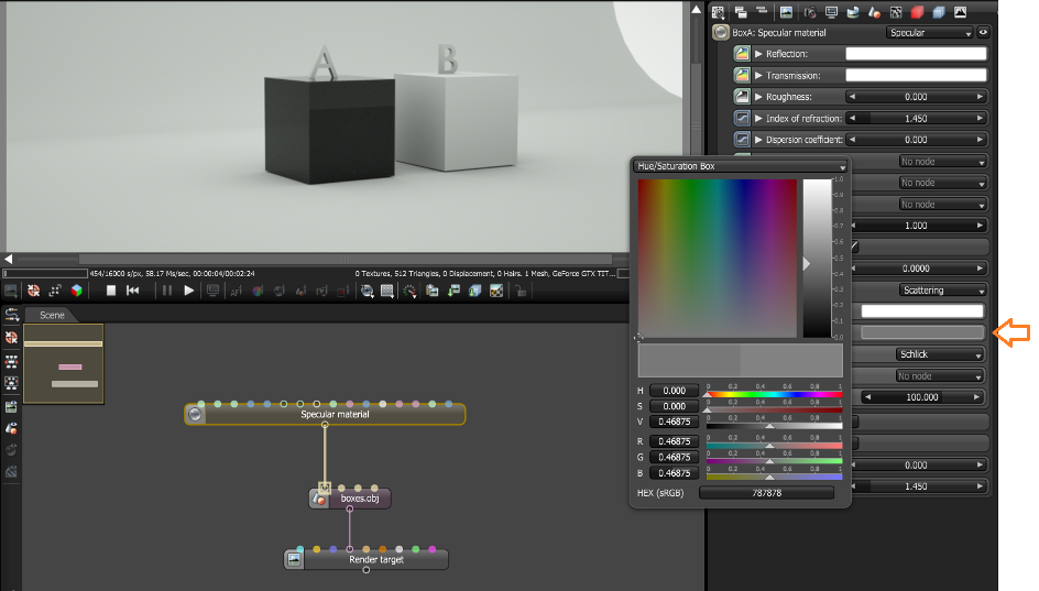 I've looked at the manual but can't seem to make sense of the setup. For instance, with the scatter node how do I know what colours I should be picking for absorption and scattering etc.