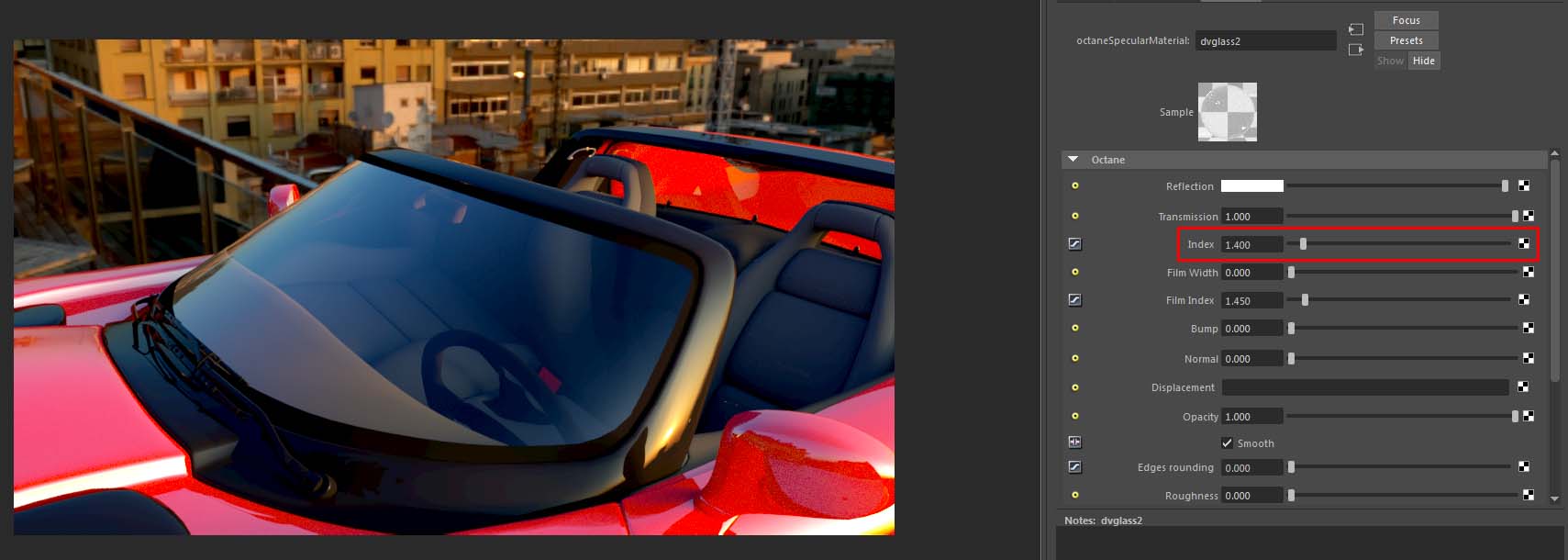 Example: I try to render a car model which I have bought. I use a simple specular shader for the windshield, nothing fancy.