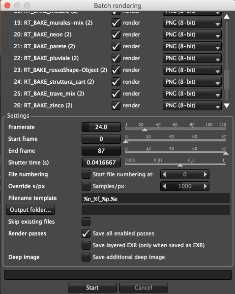 By selecting the generic copy, is possible to fine tune all the settings, like resolution, render passes, kernel settings and so on. Since they are shared with all the other baking render targets, when finished, just select the default Batch rendering script to render all the textures in one go.