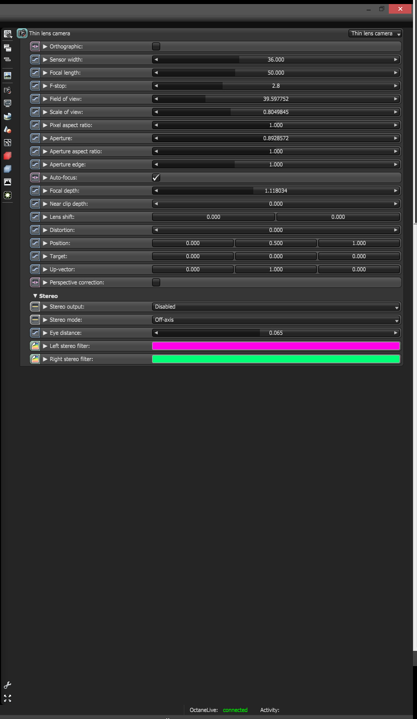 So I noticed when looking in the Standalone version that the Thin Lens Camera has all real world camera settings that I´ve been looking for since I started with Octane.